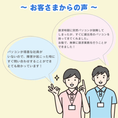 - パソコン故障時はメーカーでは行っていない「パソコンの貸出」も行っています。