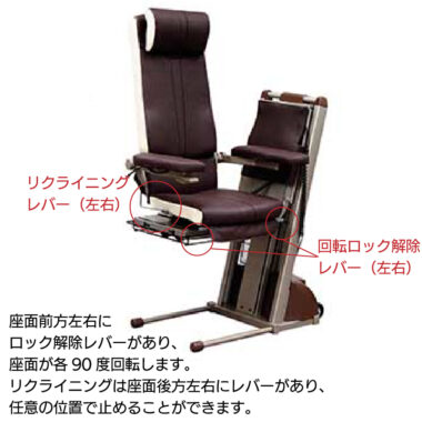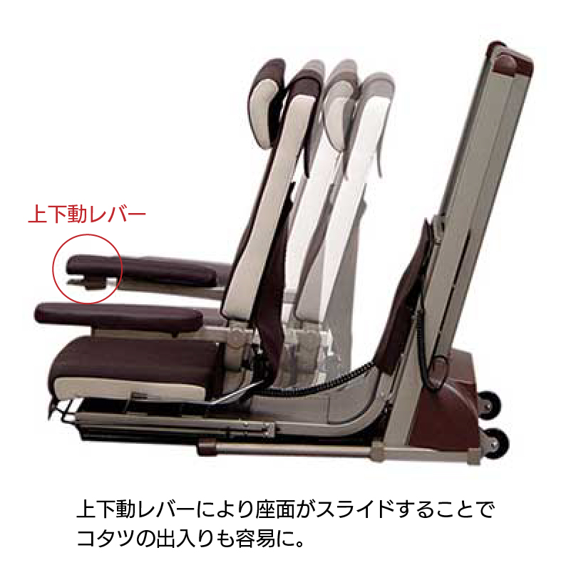 座いすの上下昇降に加えて前後へのスライド機能が大きな特徴です。
