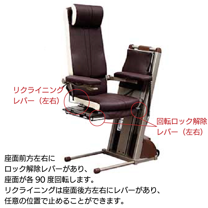 また、座いすの回転、背もたれ部のリクライニングと充実した機能をご用意しています。